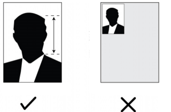 Cannot be scanned and must be on a white plain background.